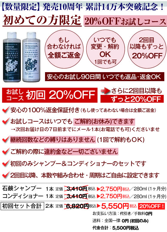 限りませんので、初めはぜひ当コンディショナーとのセットでのご利用をお願いしている次第でございます。